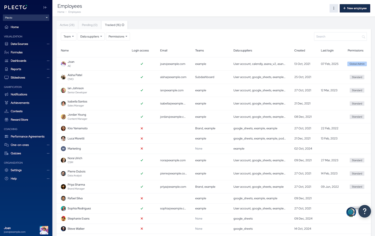 👉 To give your employees login access, you need to invite them to your Plecto organization.
