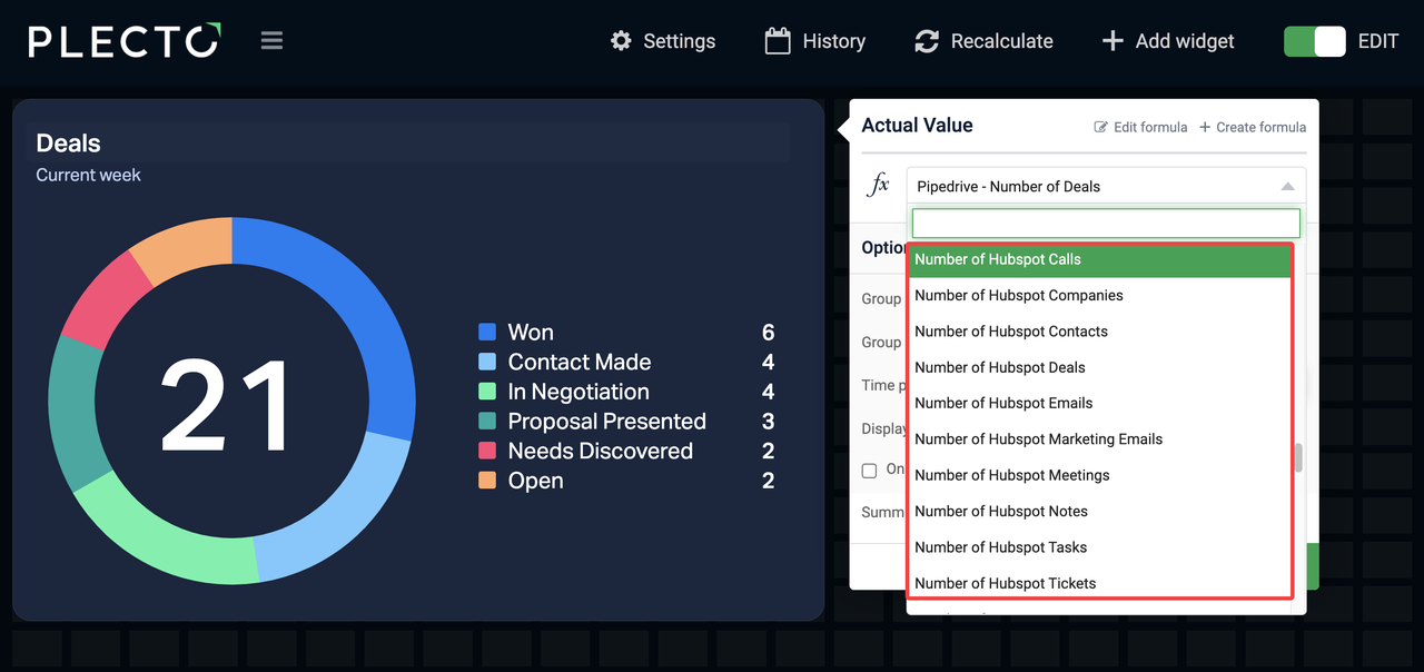 Whenever you create a new integration data source, Plecto automatically creates a formula that counts the number of registrations in a data source. The formula uses the default date of the data source.