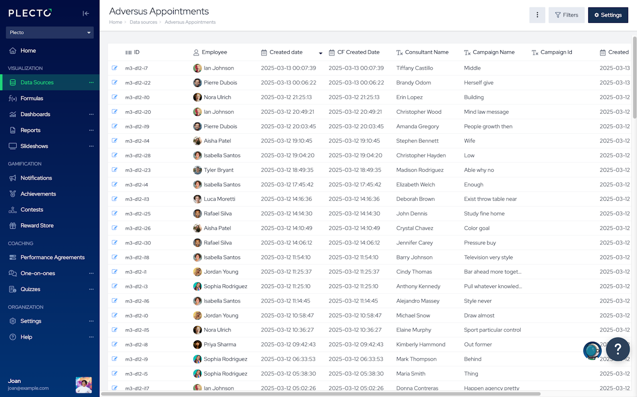 Use Plecto as your own CRM system and add registrations manually. Create individual employee targets, meeting schedules, and more. 🚀