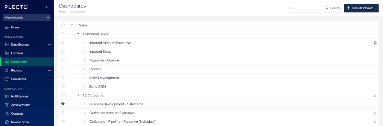 Add dashboard shortcuts to the front page and get quick access to your favorites from all your Plecto organizations, regardless of the organization you're currently logged in.