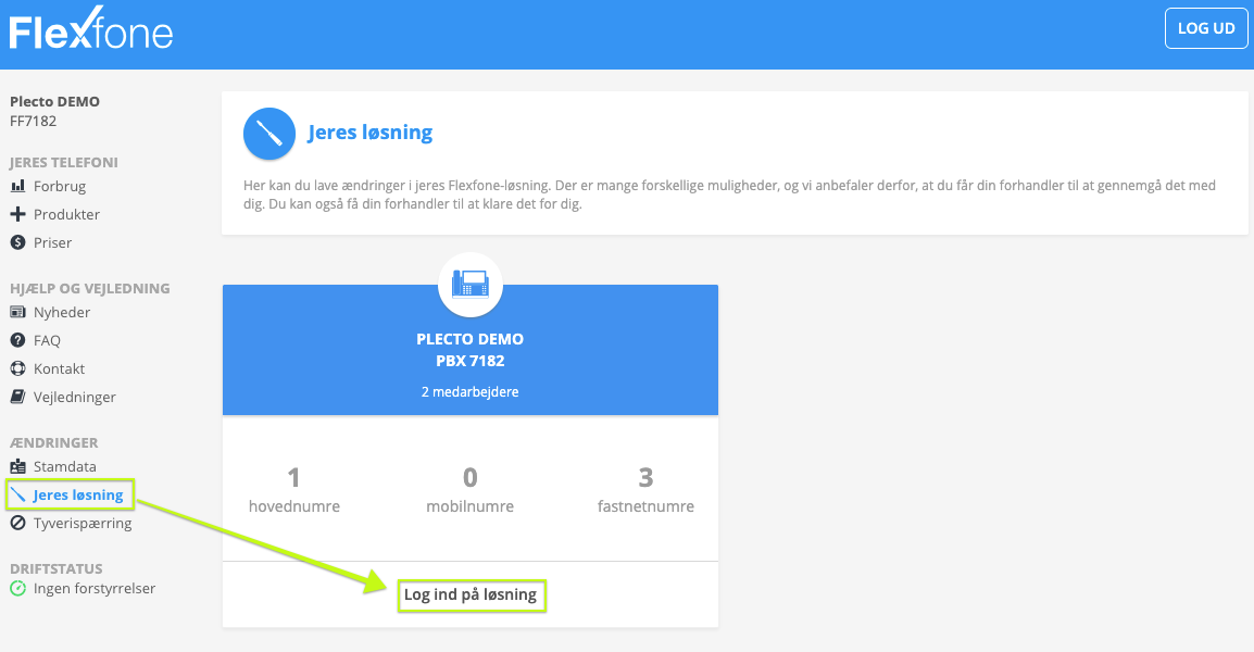 Go to your Flexfone admin interface at https://kunde.flexfone.dk/.