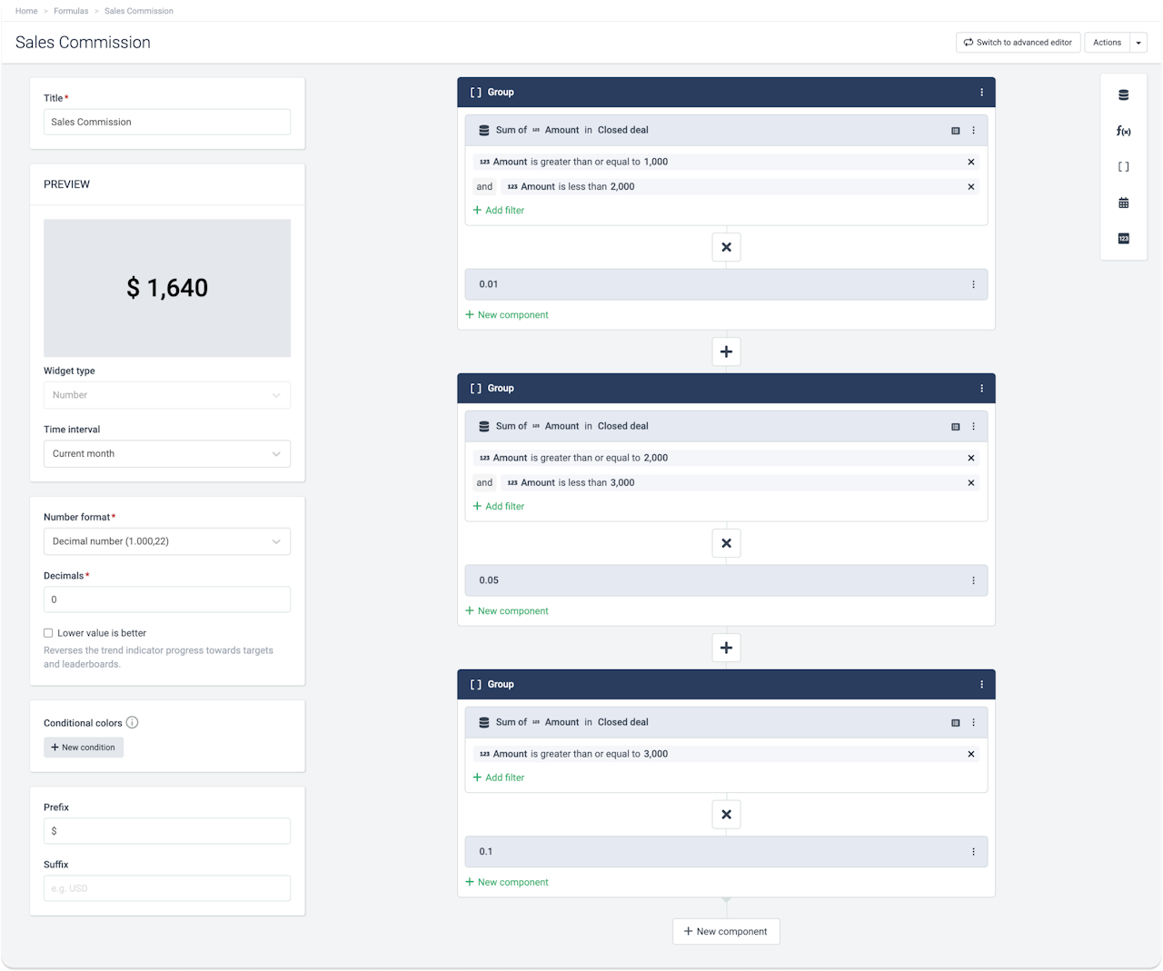 ( (Sum(Closed deal,Amount>=1000&Amount<2000,Amount)*0.01) + (Sum(Closed deal,Amount>=2000&Amount<3000,Amount)*0.05) + (Sum(Closed deal,Amount>=3000,Amount)*0.1) ) |