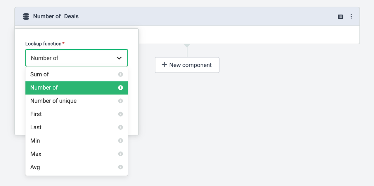 Click New component and select Data function (top-left corner). Learn about the other functions below.