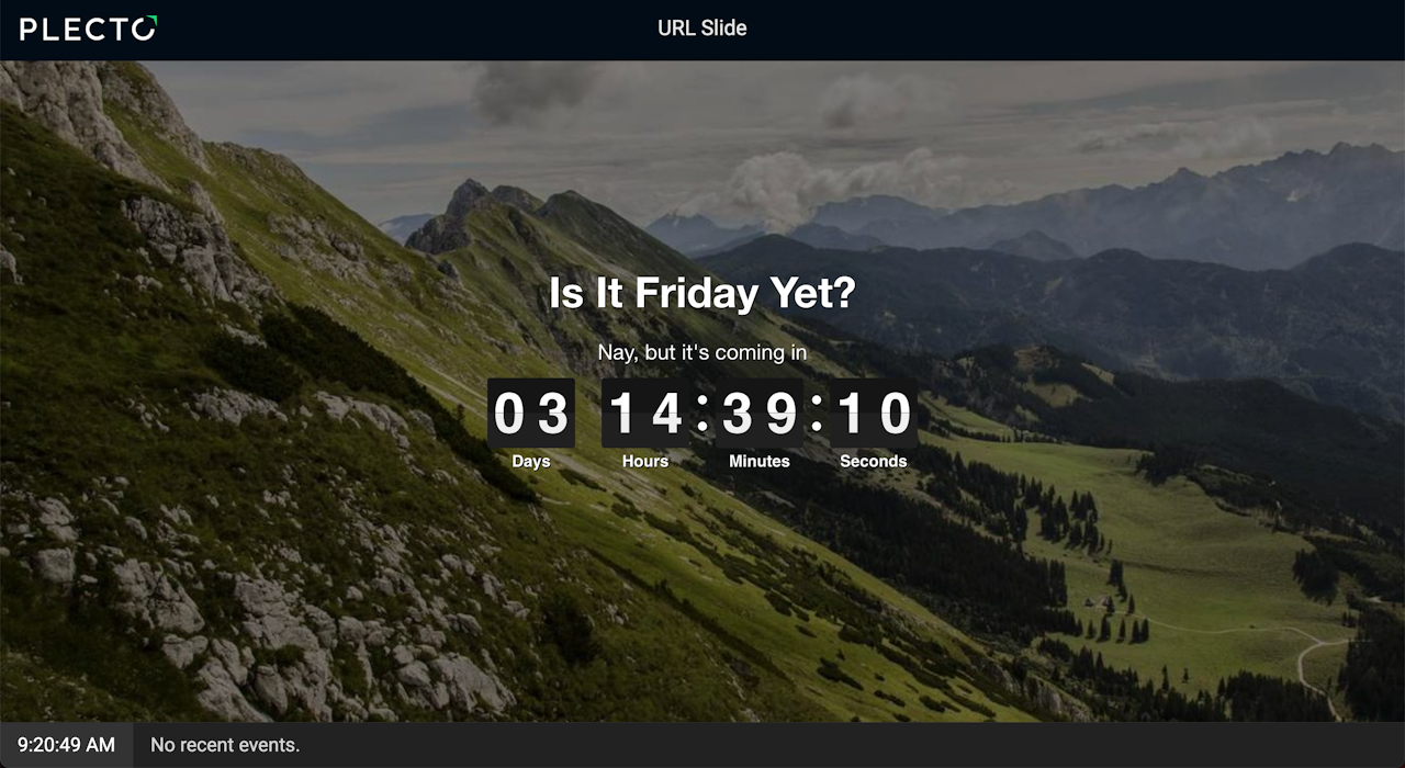 If your slideshow contains multiple slides and they are displayed around the same time during the day, it can be useful to set a slide duration. The default duration is 60 seconds, but you can choose a custom duration for each individual slide. Once the time runs out, the slideshow will switch to the next slide. The slides will keep rotating for as long as they're active.
