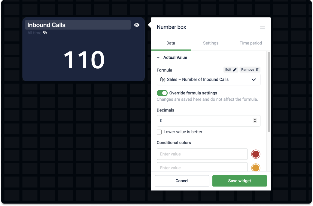 Create single-component formulas and override existing formula settings directly on a dashboard widget.