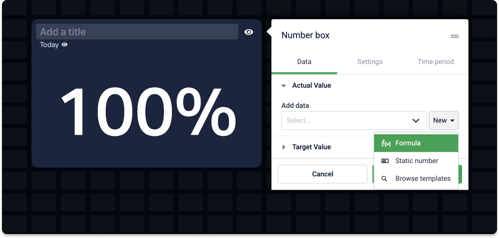 💡 Creating formulas on widgets is easier than using the formula editor, and they will be saved and stored just like all the other formulas in Plecto.