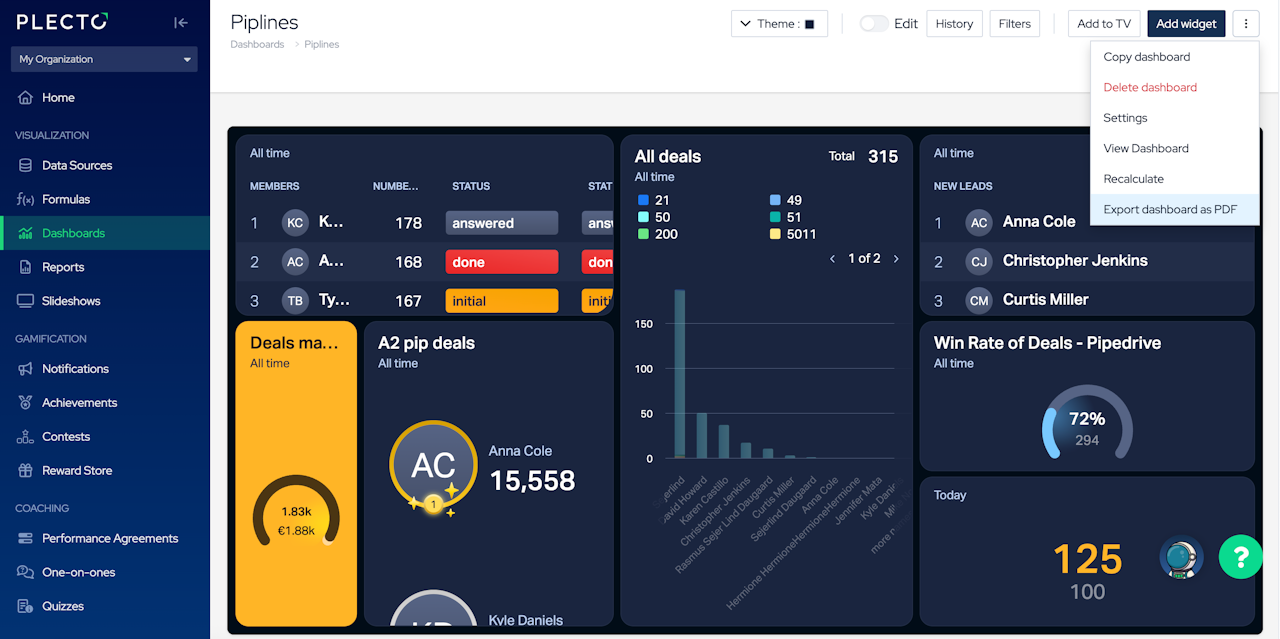 Click Export dashboard as PDF