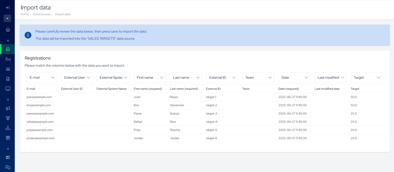 If the spreadsheet contains emails from users that are not part of your Plecto organization but are members in another organization, Plecto will not insert their data into the data source. To import data for these users, invite them to your organization.