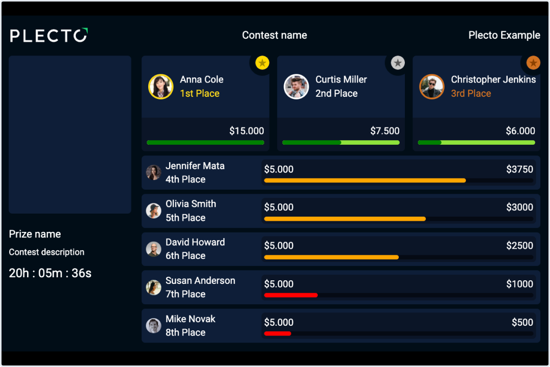 Player competition: Add individual players who will be participating in the contest. Give everyone the same target or add individual targets to each employee.