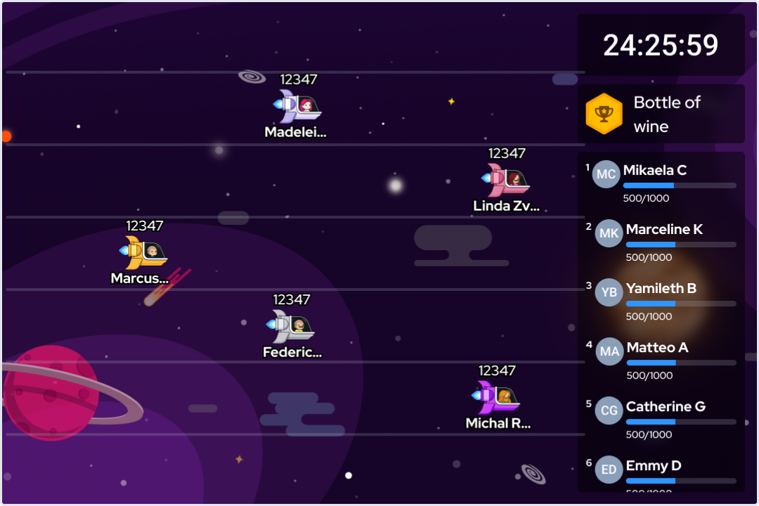 Use randomized contest avatars or personalize your own! Contest avatars are currently available with the Race in space and Mountain race themes.