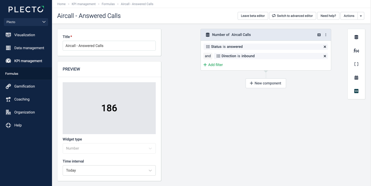 Formulas take the raw data from data sources and convert it to metrics and various KPIs that you can use with Plecto dashboards, slideshows, contests, notifications, reports, and more!