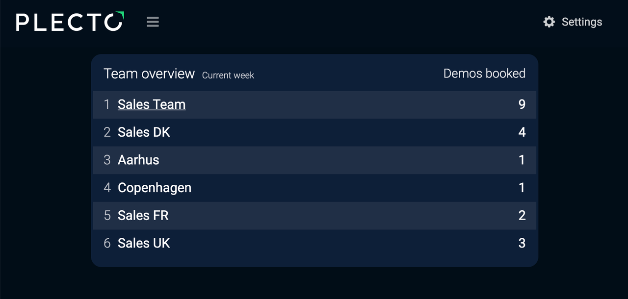 If the team appears on a different dashboard, you will be able to click on the team's name, and Plecto will take you to its home dashboard.