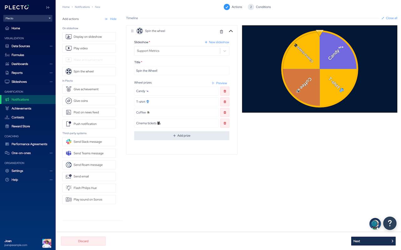 With Spin the Wheel, you can: