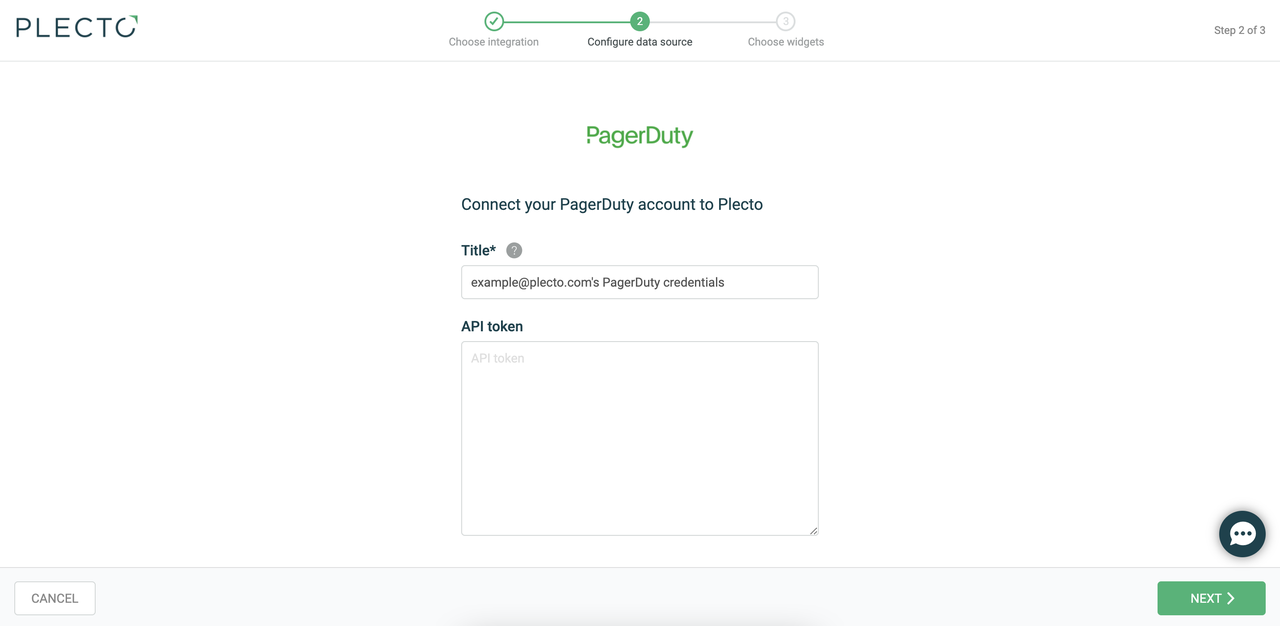In Plecto, go to Data sources > New data source > PagerDuty.