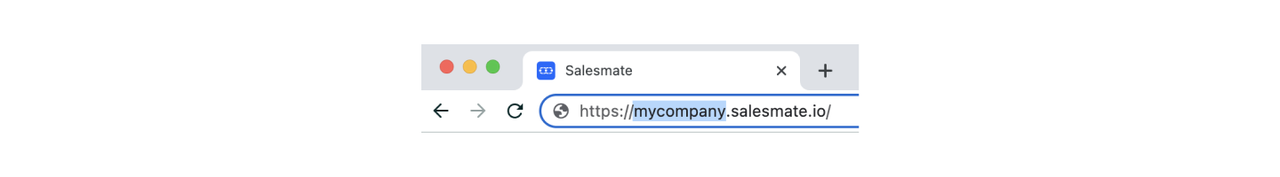 When you're signed in, look at the URL and find your subdomain. In the example mycompany.salesmate.io, the subdomain is mycompany. You will have to use it in Step 2.